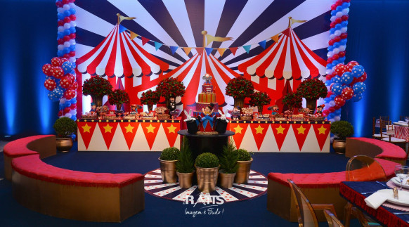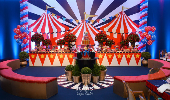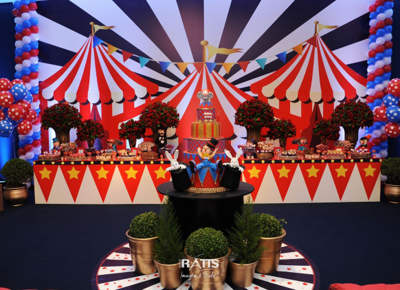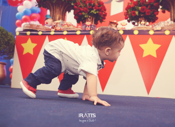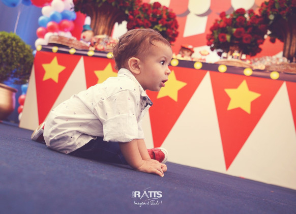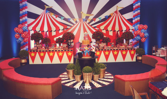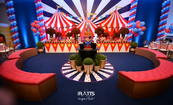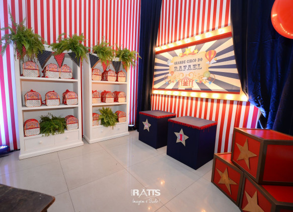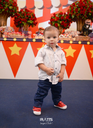 Tema: Circo VIntage Local: Mercearia Kids Decoração: Tutti Bello di Rafaela Campanati Doces: La Docica Animação: Tia Hanna Iluminação: Carlos FC